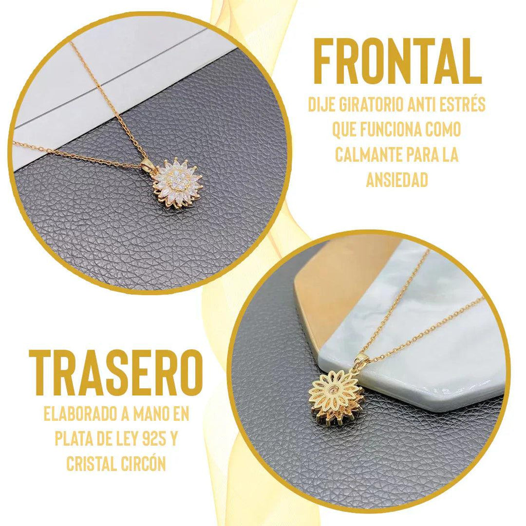 Creado meticulosamente a mano en plata de ley 925, nuestro collar girasol destaca por su aspecto único y sofisticado.Cada detalle ha sido cuidadosamente elaborado para ofrecerte una joya que trasciende el común, capturando la esencia radiante de un girasol en cada giro.